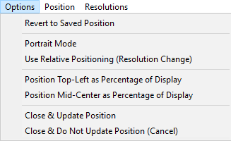 When you click on the "..." next to the Top/Left position, a Screen Position window will open to provide a visual tool for setting the opening screen position. By default, the current screen resolution is used - for targets with different screen resolutions or layouts, use the Options and Resolutions menus.