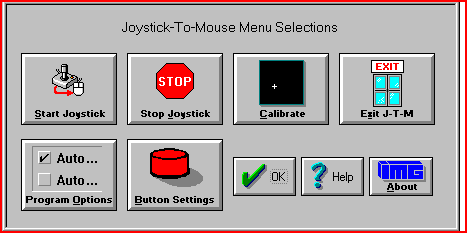 Button Settings can be selected to configure how each of the Joystick Buttons will react when Joystick-To-Mouse is operating.