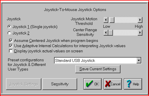 | Joystick-To-Mouse: for Windows; Run Windows with a Joystick!; Version 2.80 Release 6; User's Guide | ||