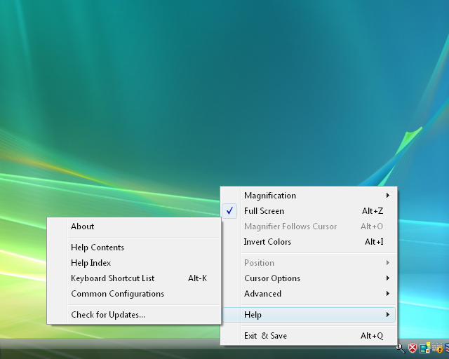 About This option opens a notification window describing the version and copyright information about The Magnifier.