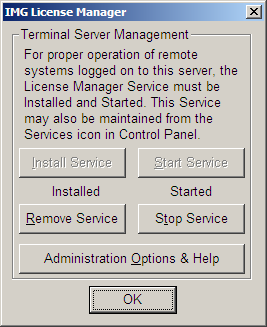 Server Note: When operating on a Server, there is an IMG License Manager Service that needs to be running for proper operation of Remote Terminals and Systems. When unlicensed, the Terminal Server Management (Demo) option provides access to Install/Remove, and Start/Stop this service. See below for more information.