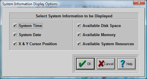 The System Information Dialog Box allows you to select which options are to be displayed in the Information Panel:
