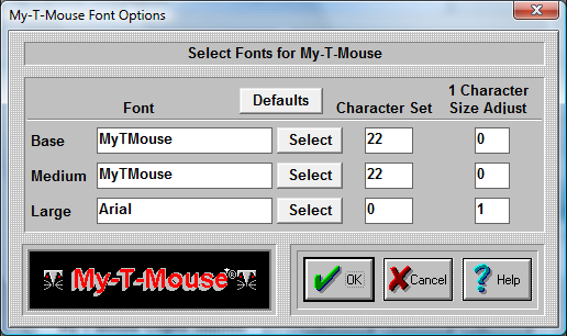 Sizes 1-6 are the Base sizes. For almost all uses, the MyTMouse font is the best choice.