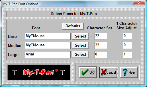 The Font capabilities of My-T-Pen are limited for a variety of reasons. These limited options have only been included as a specific solution for a small subset of customers. Use My-T-Pen Build-A-Board for more complete control over the appearance.