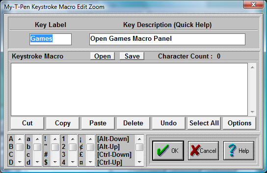 You may edit the Keystroke Macro directly in the Edit window. You may wish to refer to the Advanced User Notes for options & details regarding the keystroke macros.