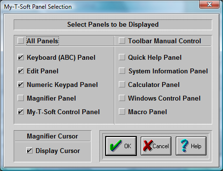 If you want ALL panels to be open every time you run My-T-Soft, click on the "All Panels" Check-Button.