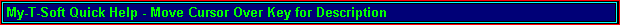 The Quick Help panel appears above the currently displayed panels and describes each key as it is passed over with the cursor. You may open or close the Quick Help panel from the My-T-Soft Menu or from the Help button on the My-T-Soft Control Panel .