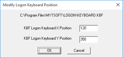 If you do not have Build-A-Board, and wish to change the opening position of the Small/Medium/Large Build-A-Board layouts, there is a basic utility called KBFLOGON.EXE in the LOGON folder. You can access this by clicking on Update Opening Position (Build-A-Board Layouts). By running this utility, you can change the opening X / Y position of the current selected Build-A-Board layout to match your screen orientation & resolution.