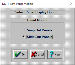 Choose "Slide-Out Panel" and My-T-Soft's panels will slide in & out. The new configuration will be displayed with a visual effect of motion.