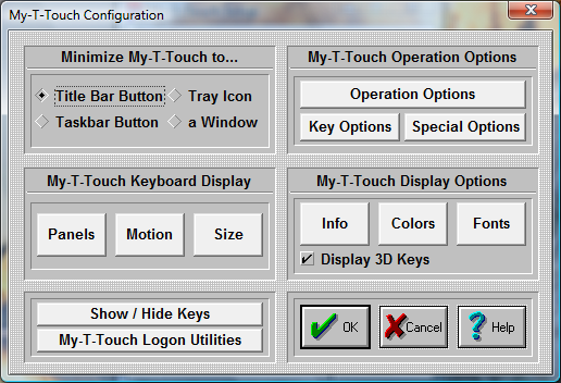 The six buttons in the middle of the dialog box offer additional configuration options for My-T-Touch.