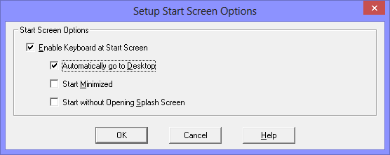 Start Minimized - when selected, this will start OnScreen and then display in the currently configured minimized state. Note some minimize options may not be available / visible at the Start Screen (e.g. if you do not select Automatically go to Desktop). It is recommended that the Button or Window option be used if this option is selected.