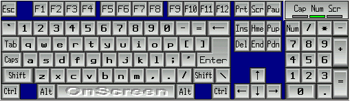 To use combination keys i.e. Shift, Alt, or Ctrl just click on that key. Your cursor will change and OnScreen will display which key is currently locked. For example, if you have clicked on the Alt key, the cursor will have the word Alt visible. The lock will be released after you click on a normal key, i.e. A-Z keys. You may carry more than one combination key at a time.
